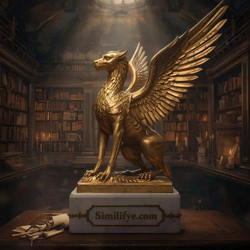 Imagine standing before a grand library, its ancient doors guarded by two majestic creatures with the body of a lion and the wings of an eagle.
